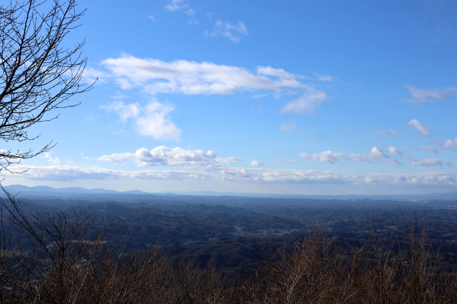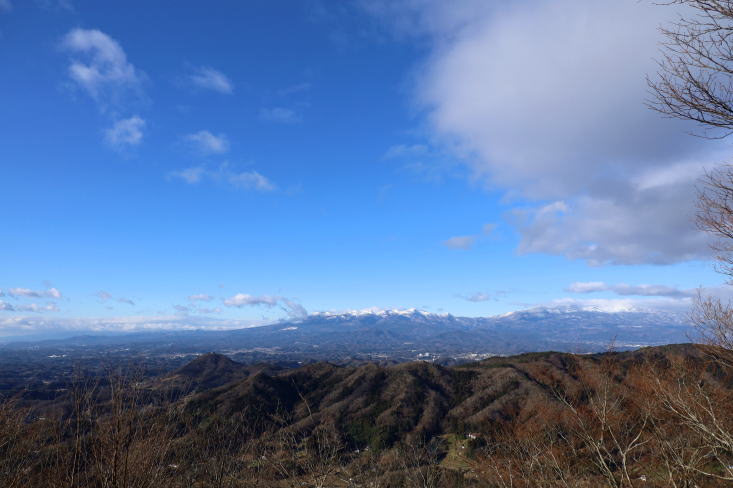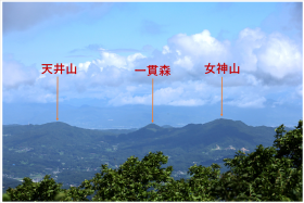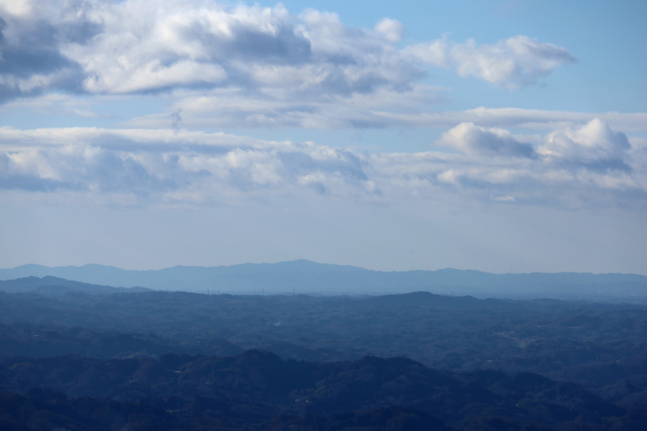 | 左: 村田ポイント(宮城県村田町)からみた稜線。東京方向には、この稜線だけが見える。 右: 口太山(女神山の南南東)から見た稜線。(24年口太山運用記より) |