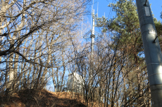 | 図表3: ピンクは福田堂(山頂)からの電波的見通し範囲。 黄色ラインは東京タワーへのライン。 |